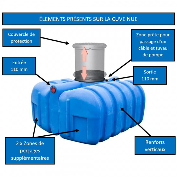 • Version nue : Cuve seule avec entrée/sortie, trappe, rehausse et anneaux de levage