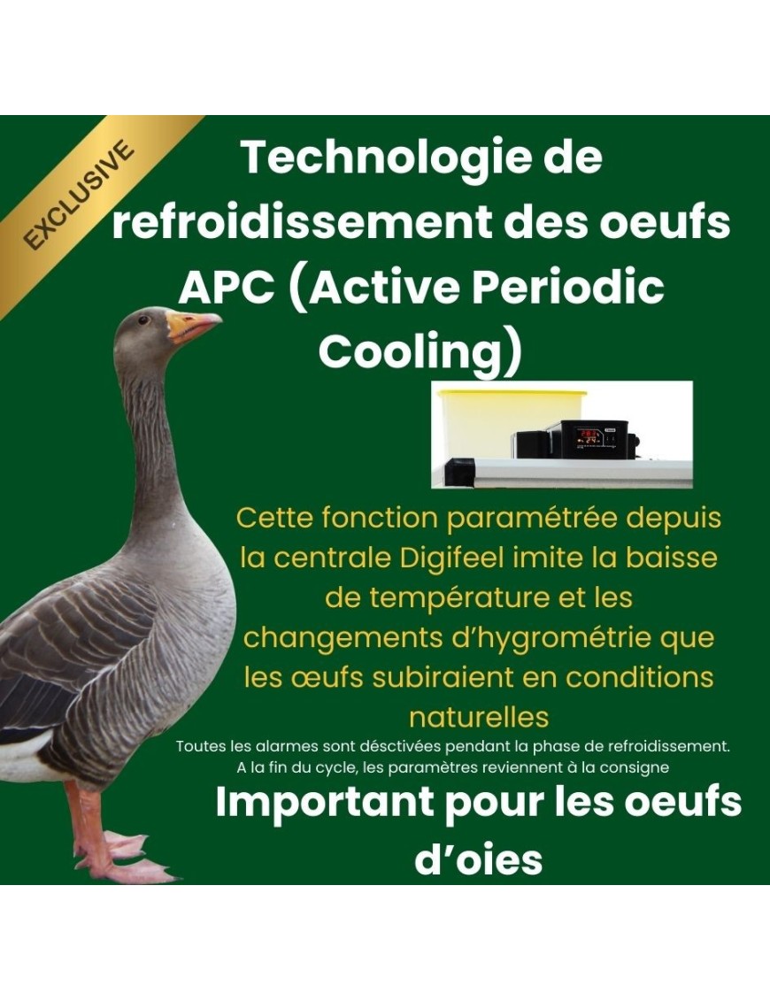 Un atout majeur : le système de refroidissement actif périodique (APC), qui reproduit les phases naturelles de refroidissement des œufs lors du départ occasionnel de la mère, ce qui aide à améliorer les taux d’éclosion, notamment pour les espèces sensibles. Pour l’entretien, les panneaux internes lisses, les chariots amovibles ainsi que la porte arrière facilitent grandement le nettoyage et la désinfection.